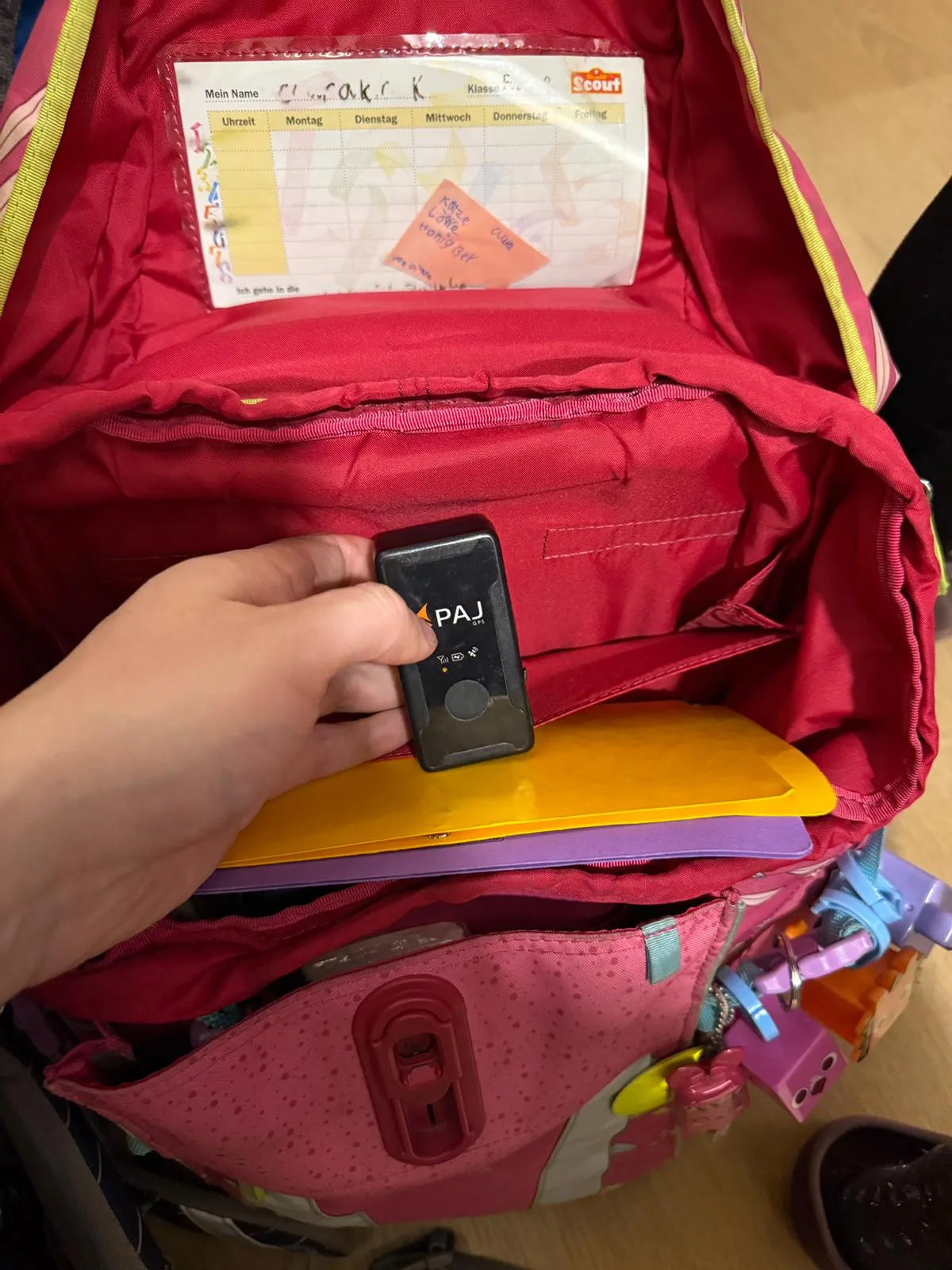 bambina con GPS PAJ nello zaino per monitoraggio e localizzazione