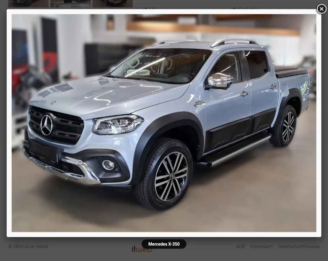 Il veicolo mostrato qui è un Mercedes X-350, che fa parte della mia flotta a noleggio. Questo mezzo era stato noleggiato da un cliente interessato all’acquisto, che voleva provarlo per un weekend a Salisburgo.