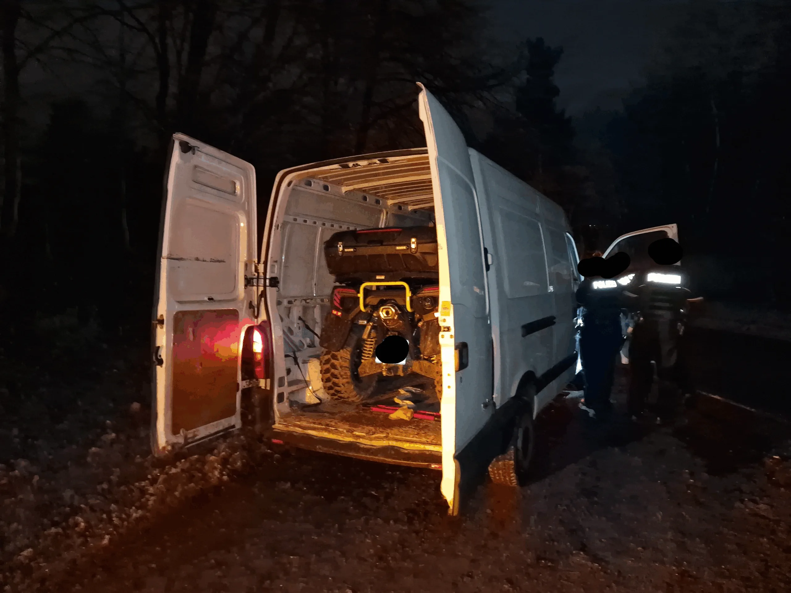 I ladri avevano caricato lāATV, dal peso di circa 500 kg, nel furgone con lāintenzione di fuggire. La polizia ha arrestato uno dei sospettati che si trovava allāinterno del mezzo e lo ha interrogato. Naturalmente, ha fatto i nomi dei complici. Gli altri sospettati sono ora ricercati con mandati di arresto.